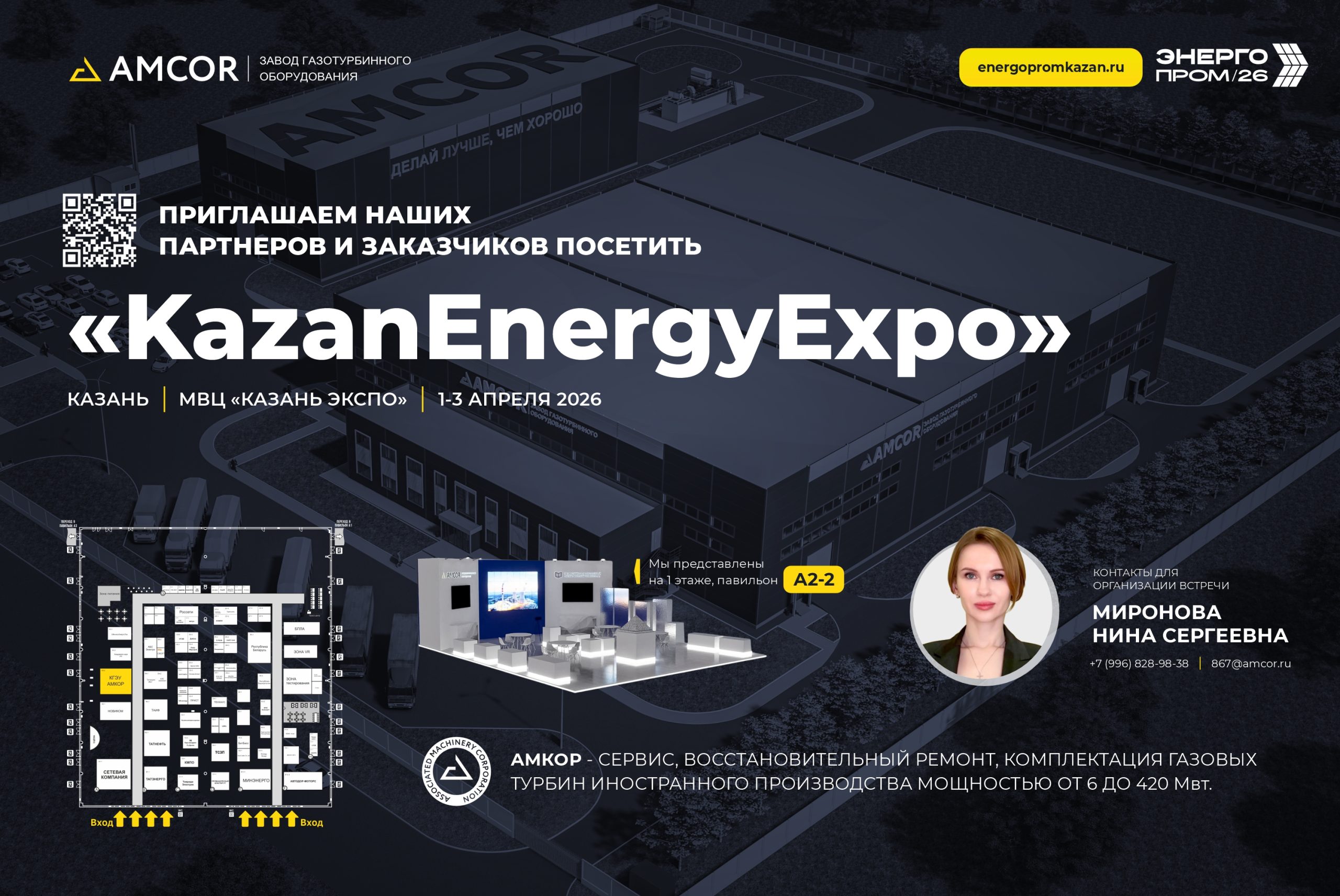 Компания «АМКОР» приглашает партнеров и заказчиков посетить форум KazanEnergyExpo 2026, который пройдет 1-3 АПРЕЛЯ 2026 года в МВЦ «КАЗАНЬ ЭКСПО».